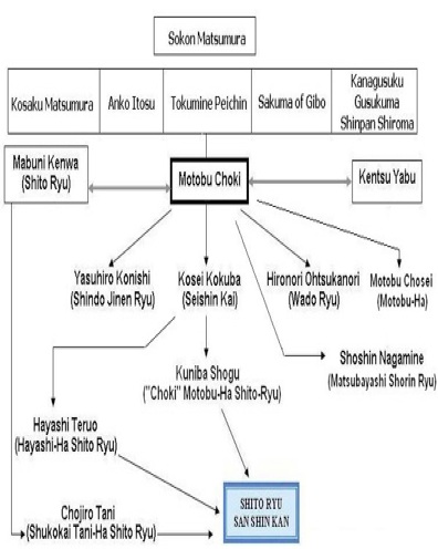 Among Motobu Choki teachers we can include: Anko Itosu - "Shuri-Te", Kasoku Matsumora - "Tomari - Te", Kanagusuku and Sakuma of Gibo.